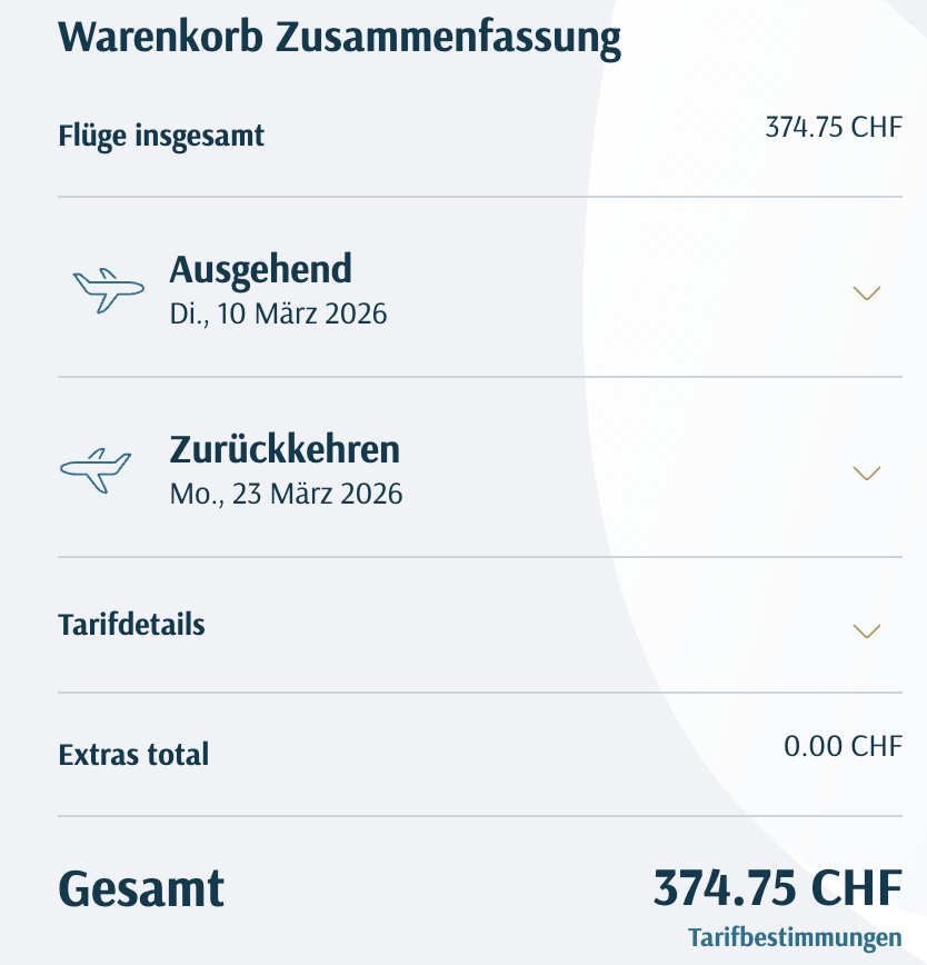 Wenn ihr AufgabegepĂ€ck hinzufĂŒgen wollt, kostet euch das 15 Franken pro Richtung: