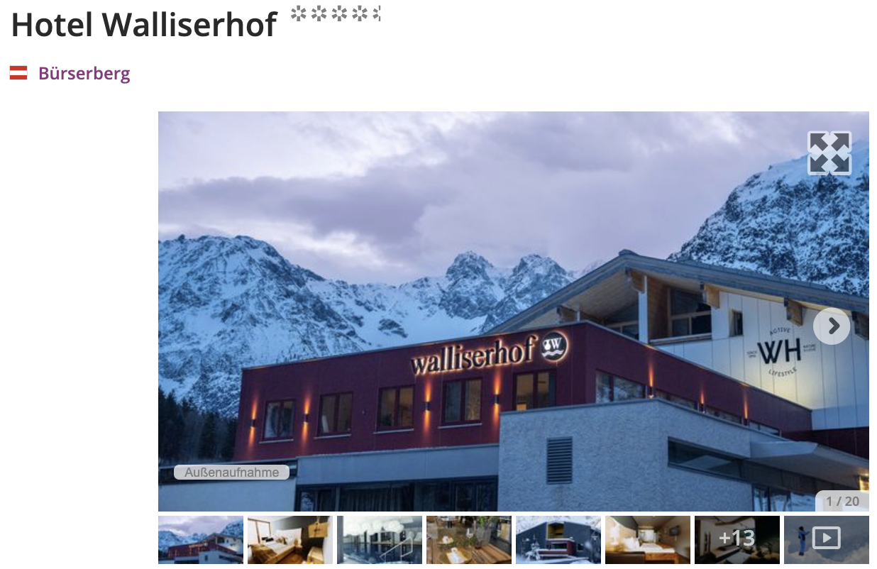 Das Design-Hotel Walliserhof in Bürserberg liegt 600 Meter entfernt von der Bergbahn "Dorfbahn". Für euch im Preis enthalten ist die Halbpension, mit welcher ihr euch auf ein Langschläfer-Frühstücksbuffet (07:30 - 11:00) sowie ein 4-Gang-Dinner am Abend freuen dürft. Das hauseigene Restaurant "Hochsitz" wurde mit einer Haube von Gault Milau ausgezeichnet.
