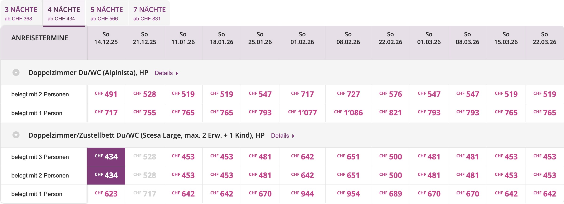Ab CHF 434 p.P.