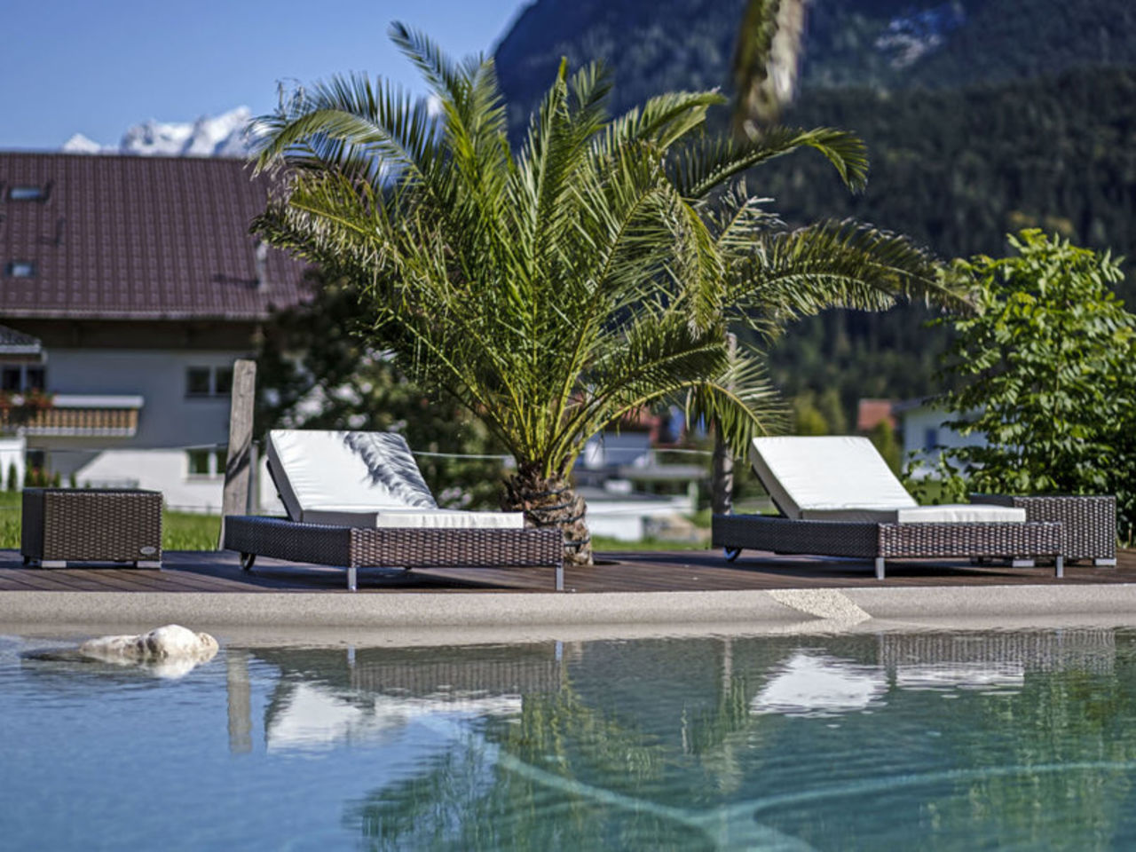 Das Hotel verfügt über 86 Zimmer, die zum teilweise urig-gemütlich, zum Teil aber auch im modernen alpinen Stil eingerichtet sind. Für die Gäste steht zudem ein Innenpool und ein 200qm großer Wellnessbereich mit Sauna zur Verfügung. Im Außenbereich könnt ihr unter Palmen entspannen.